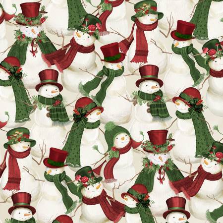 Wilmington Fabrics Cream Packed Snowmen Woodland Snowmen