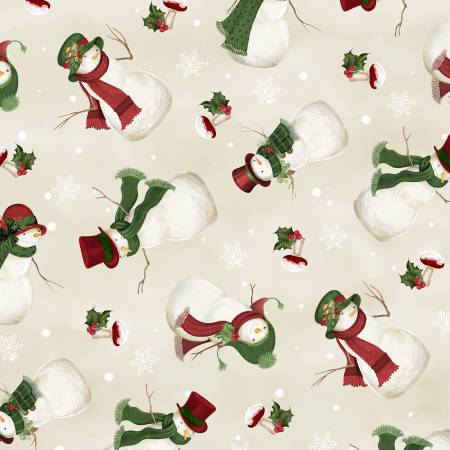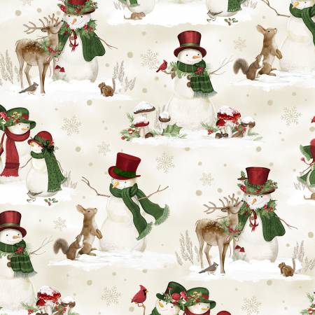 Wilmington Fabrics Cream Tossed Snowmen Woodland Snowmen