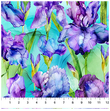 Northcott Infatuation Iris Feature Turquoise Multi